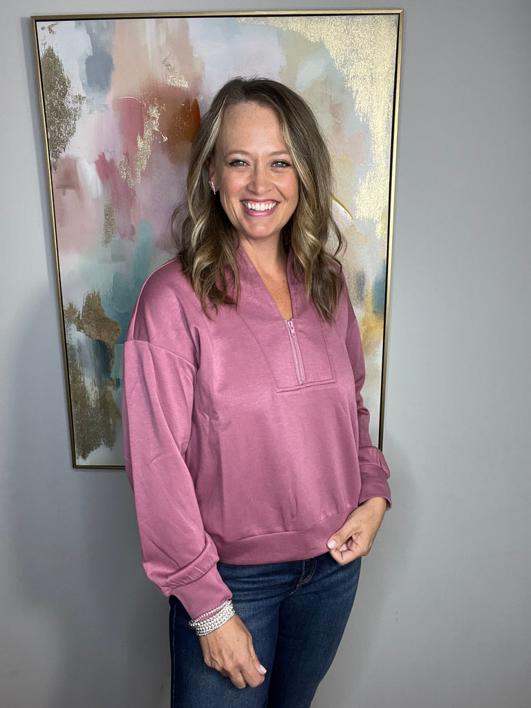 Vintage mauve scuba zip up loose long sleeve drop shoulder sweatshirt.
